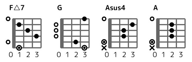 YouTubeで弾いたBメロ〜ラストの構成に合わせて、コードダイアグラムを配置しています。